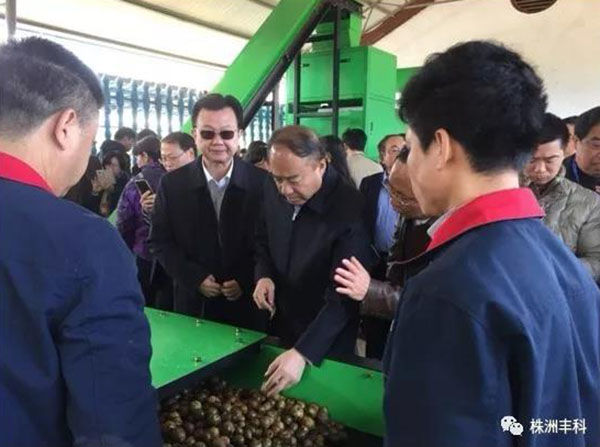 2016年11月11日,全國油茶產(chǎn)業(yè)發(fā)展現(xiàn)場會在永州市召開。國家林業(yè)局副局長陳鳳學(xué)、計(jì)財司司長閆振、湖南省人民政府副省長戴道晉、副秘書長曹英華、湖南省林業(yè)廳廳長鄧三龍、巡視員唐苗生、永州市委書記陳文浩、市長易佳良出席會議。我司應(yīng)邀參加了此次油茶博覽會,“油茶果成套處理自動生產(chǎn)線”首次亮相全國油茶產(chǎn)業(yè)發(fā)展現(xiàn)場會,并在永豐油茶基地現(xiàn)場展示。